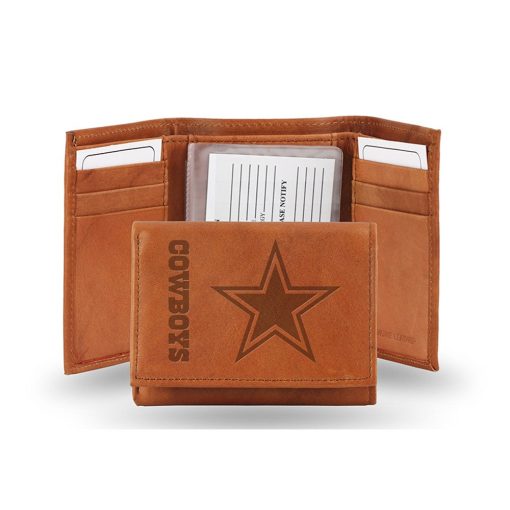 Dallas Cowboys Embossed Genuine Leather Trifold Wallet – Pecan Brown