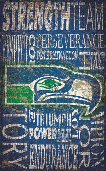 Seattle Seahawks 11 x 19 Heritage Word Collage Wooden Sign